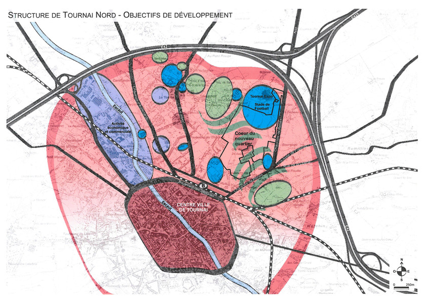 "Marché d’urbanisme et développement du territoire. Il s’agit de l’établissement d’un Rapport Urbanistique et Environnemental (RUE) pour la Zone d’Aménagement Communal Concerté du faubourg Morel. Cette ZACC couvre une superficie d’environ 80 hectares et se situe au sein de la première couronne périphérique de Tournai. Située à l’arrière de la gare, elle s’étend jusqu’aux autoroutes reliant Tournai à Lille, à Bruxelles et aux villes wallonnes." A+