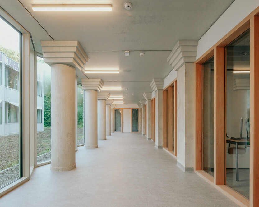 La mission confiée aux architectes était double : d’une part, préserver l’empreinte architecturale originelle — la rigueur verticale des colonnes, la finesse des volumes, la notion de transparence et de transitions spatiales — et d’autre part, répondre aux normes énergétiques, techniques et aux exigences du sport de haut niveau.