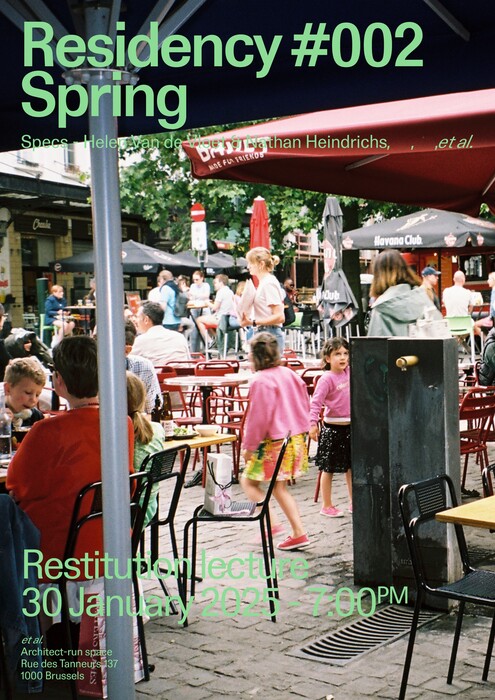 La restitution de cette résidence sera présentée lors d’une conférence organisée le 30 janvier à 19h à Bruxelles (rue des Tanneurs 137), accompagnée du lancement d’une publication consacrée à leur recherche, publication soutenue par la CAP archi et la Cellule architecture.